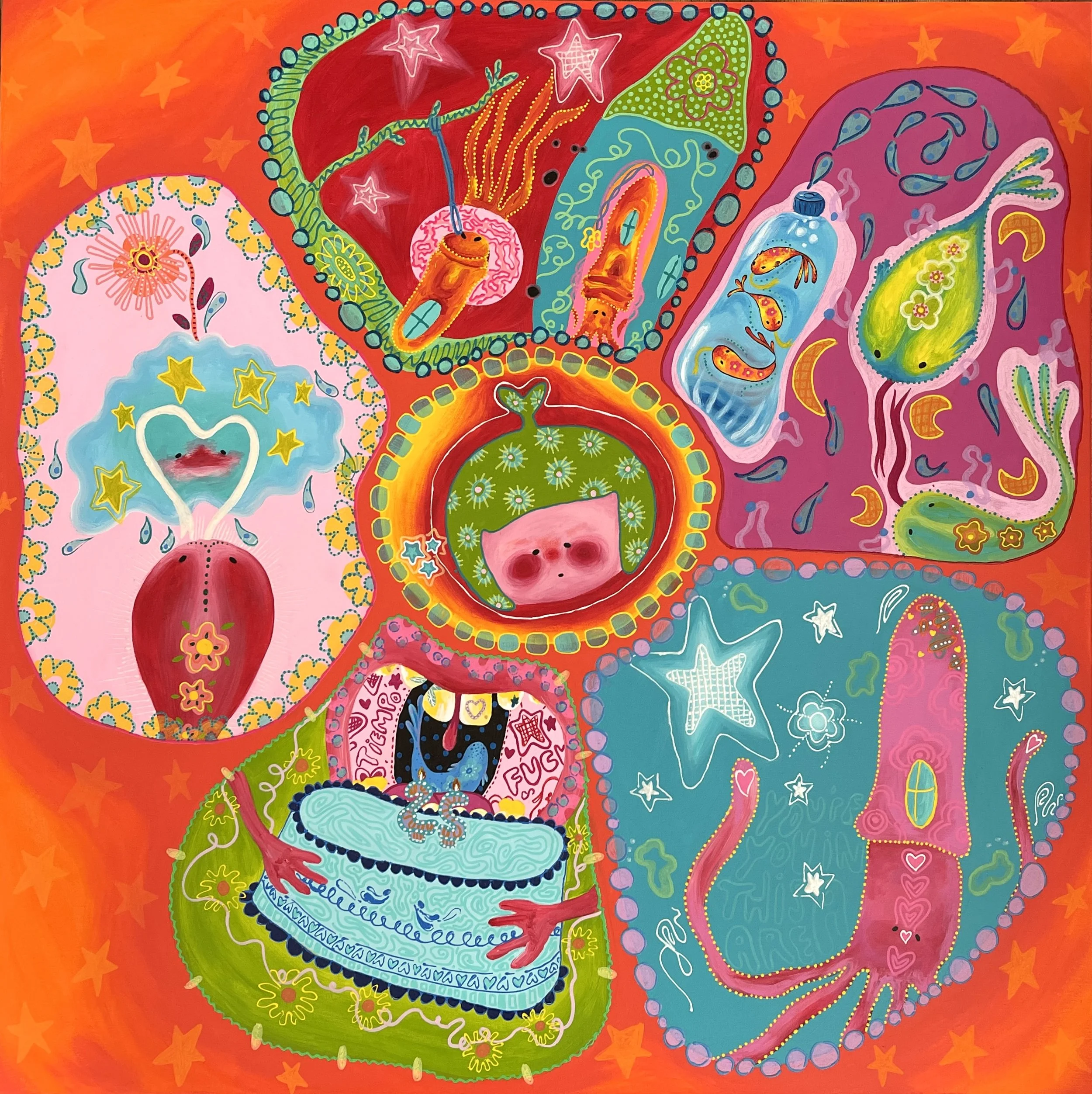 I love telling stories through mixed media and acrylics. My mostly focus my artwork around themes of identity, emotions, and resilience. My paintings root from my childhood in El Salvador, losing my sister to gang violence when I was little and the emotions that followed me through adulthood living as an immigrant in the U.S. Painting continues to heal my inner child and I can only hope that my artworks can be a form of comfort for those who see them.
